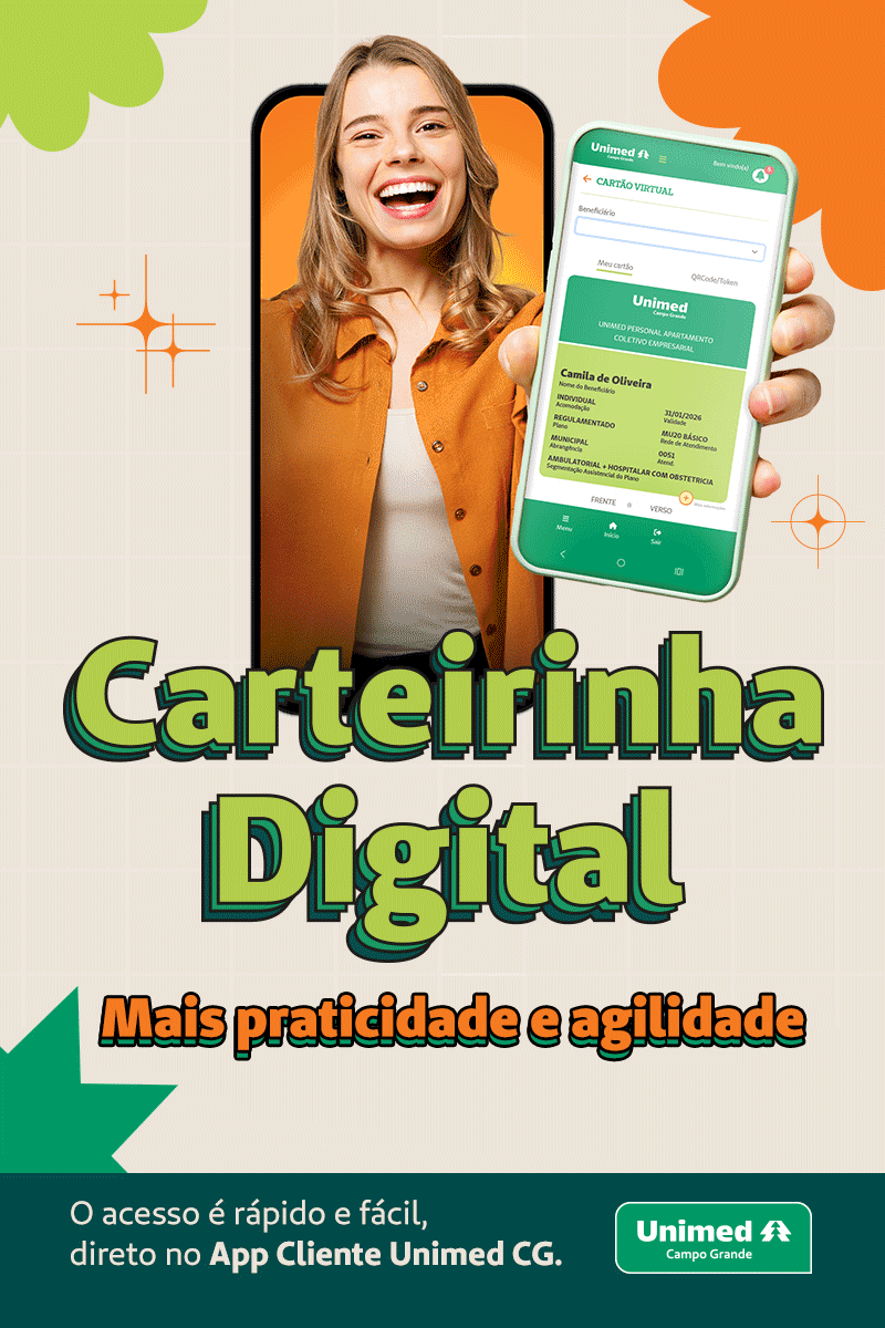Para acessar sua carteirinha, basta entrar no Canal do Cliente ou baixar o aplicativo Cliente Unimed Campo Grande nas principais lojas de aplicativos.